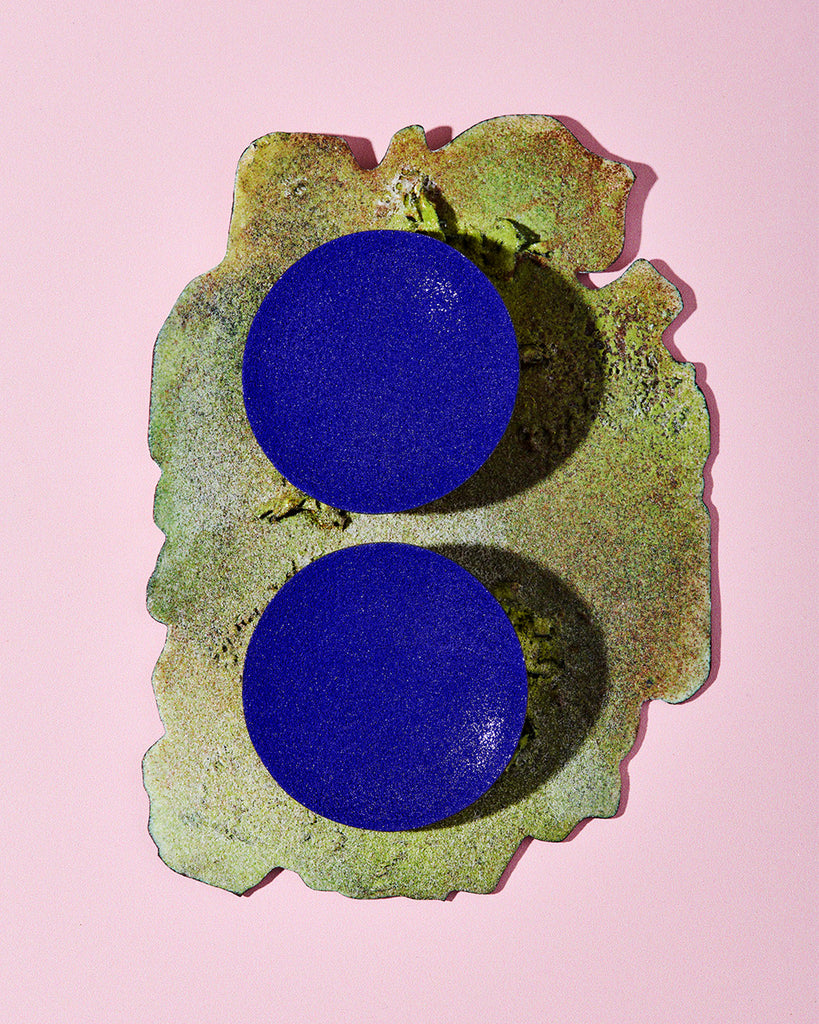 The Cobalt Blue Color Field earring is a rich and vibrant tone. The under fired enamel maintains the glass granular surface that sparkles and absorbs light beautifully.